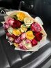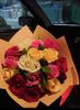 Состав букета: 15 разноцветных роз, упаковка бумага крафт.