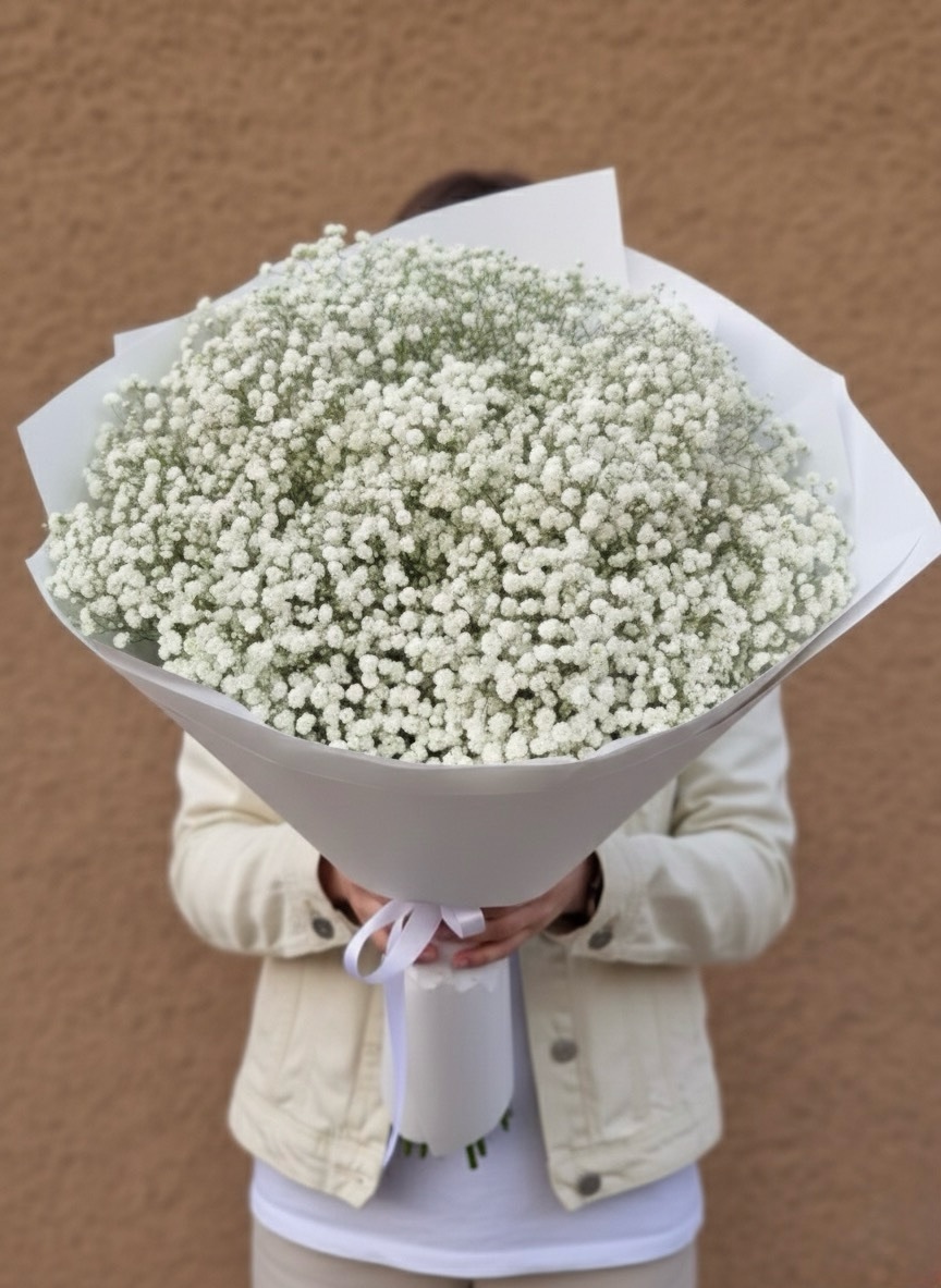 Стильный, необычной красоты букет из белоснежных гипсофил, такой пышный, что похож на облако)
