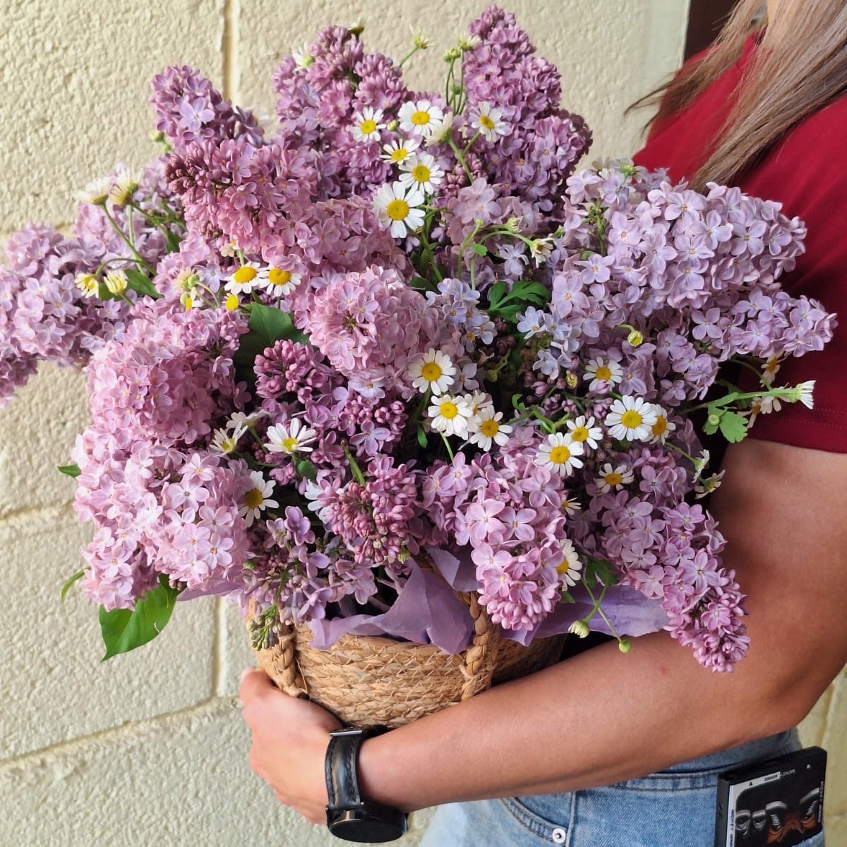 Стойкость: Цветы находятся в специальной флористической губке с водой, что позволяет им дольше сохранять свежесть.